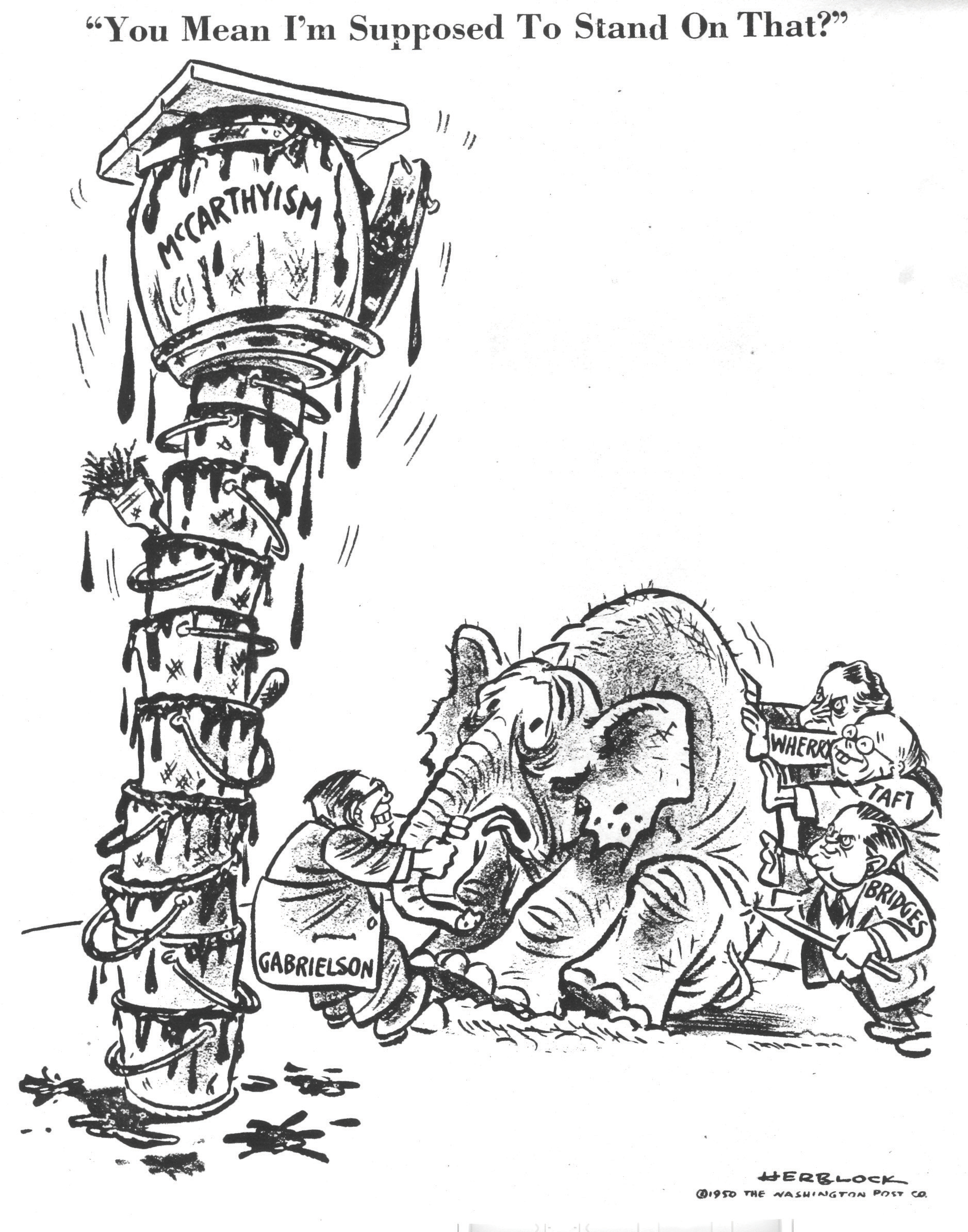 نشرت الواشنطن بوست في 29 مارس 1950م رسم كاريكاتيري من رسم هيربرت بلوك، يعبر عن حالة هستيريا التشهير الجماعية التي اجتاحت الولايات المتحدة، وقد عبر عن تلك الفوضى باستخدام مصطلح المكارثية نسبة إلى جوزيف مكارثي كونه أيقونة لحملة التشهير.